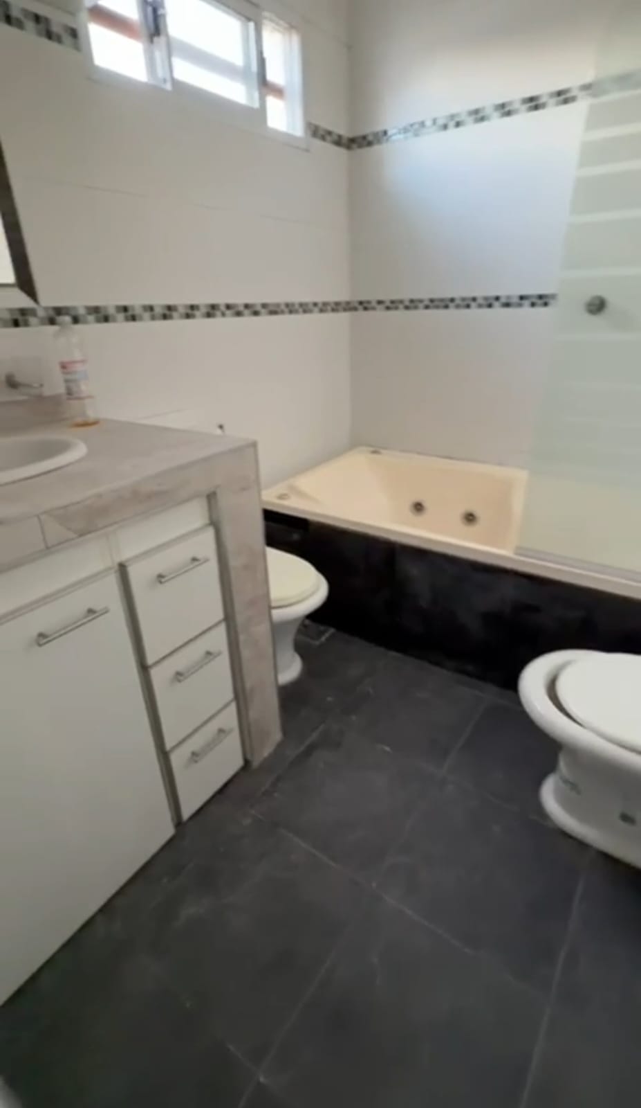 Casa al frente. En planta alta, posee 2 dormitorios (uno con placard) y baño con bañera. En planta baja tiene cocina comedor, living, cochera, quincho y patio con parrilla.